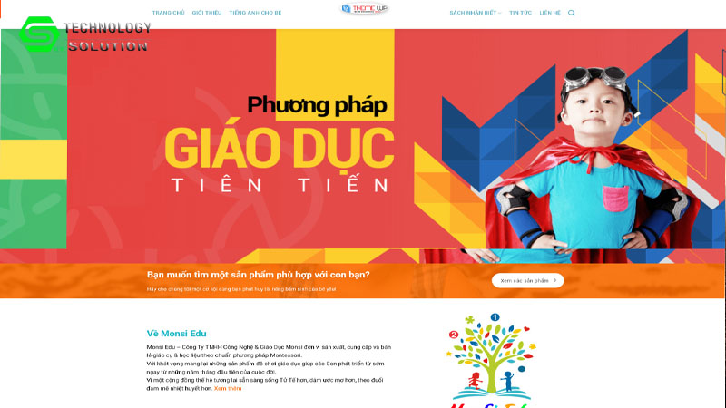 Giao diện mẫu website phương pháp giáo dục Monsi Edu